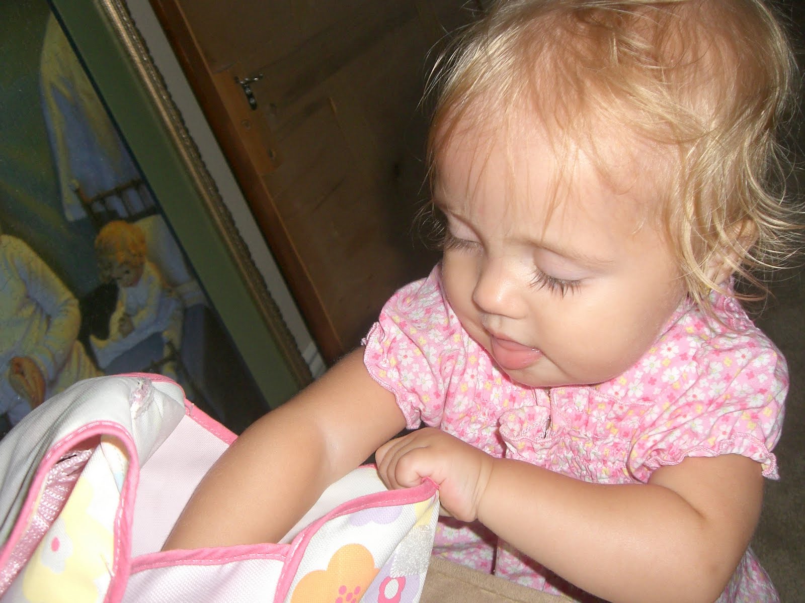 This video is just a conglomeration of stuff from this week. The first part is Jordan spinning Serena and making her dizzy. I promise we have only done this 3 times, and there don't seem to be any negative side affects...other than her staggering about and looking totally stoned for a minute afterwards, haha! Also, Serena has added a new animal sound to her vocabulary (the only other one so far is the lion...ROAR!). Her new one is Macy: "What does Macy say?" "Ahh-ooooooo!" She loves that one! Especially when Macy responds with a howl! :D She's also added another body part to her repertoire (though her bellybutton is by far her favorite still). Serena picked up on where her nose is at thanks to a book Aunt Julie sent for her birthday, The Nose Book. I always point out Serena's nose when I read that book to her. Let's see...what else did I stick in this video...? Oh, her "I love you" sign, which is her version of crossing her arms in front of her...she crosses them down and grabs her wrist. ;) And then there's a bit at the end where she's going to get her diaper changed. For some reason she likes to get her diaper changed, and when I say, "Let's go change your diaper!" Serena will march happily to her room and lay down on her changing pad! Usually she swings her arms along the way (she always does that when she's in a particularly good mood), but she didn't in this video clip...I think she was being shy because I had the camera out. :P Anyway, I hope this one's not too long for you all to be able to load and watch! There's some pretty cute stuff in here! ;)